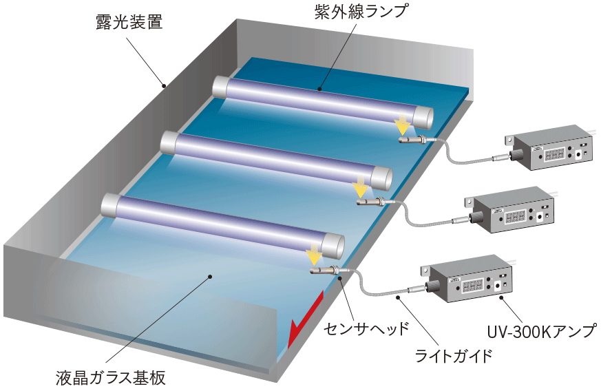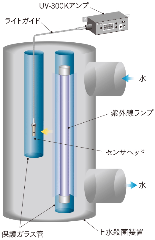一定の光量が当たっているかを常時監視する紫外線センサ。ランプの劣化、不点灯をモニタし、ランプ交換を適切に管理することができます。