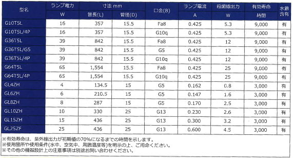 HOME / 製品紹介 / 照明(LED・蛍光灯) / 高出力ランプ・オゾンランプ(UV-C)