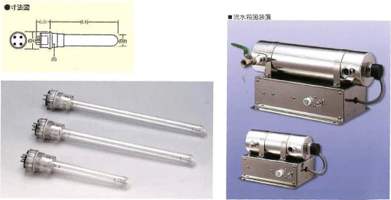 水(液体)殺菌専用のランプです。直管型殺菌ランプの外側を高純度石英ガラスで密閉した二重管片側口金構造になっております。殺菌ランプを直接水の中に入れて点灯しますから、極めて効率のよい殺菌効果が得られます。