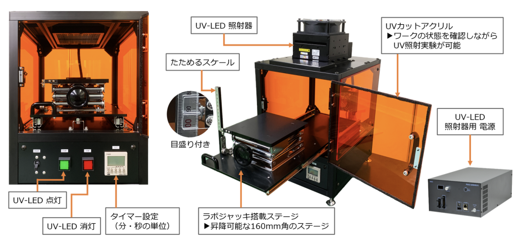 評価に適した120mm角 面型UV-LED照射器を搭載